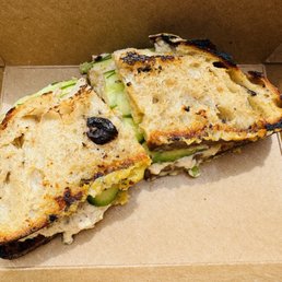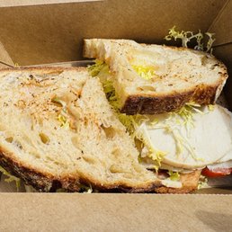 Came here over the weekend to pick up some sandwiches for a hike. Ordering online was easy. I ordered a turkey sandwich and a tuna sandwich. They both came with a fruit salad (of arugula, slices of oranges and sweet grapes). Portions were huge, I was only able to eat half a sandwich. Good flavors on their fresh bread (country bread & olive bread). Upon arriving, they made my drinks of lemonade & smoothie. This is a great spot to pick up items for a perfect summer picnic, everything looks good with extensive menu ranging from toasts, eggs, salads, sandwiches and their fresh bread!